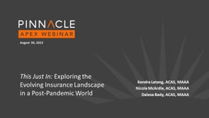 The world changed dramatically over the past two and a half years, and the insurance industry was no different. Insurers raced to respond to the impact of COVID-19 by designing new business strategies, working to meet changing customer needs and leveraging digital and technological solutions. Pinnacle Consulting Actuary Kendra Letang and Associate Actuary Nicole McArdle will be joined by GuideOne’s Dalesa Bady to discuss what COVID-related insurance trends might be here to stay in a post-pandemic world.